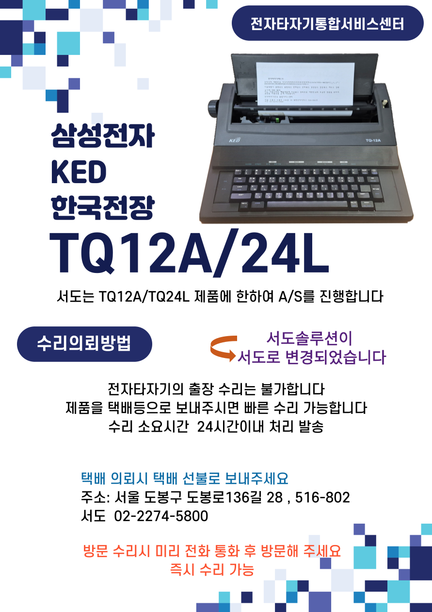 삼성전자타자기 TQ-12A, KED전자타자기 TQ-12A, 케드콤 전자타자기 TQ-12A 서비스센터